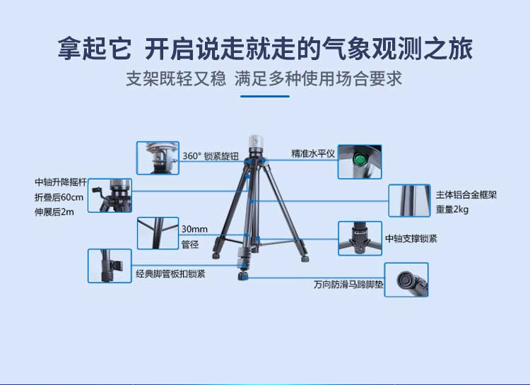 便攜式自動(dòng)氣象站是一款便于攜帶,使用方便,測(cè)量精度高,集成多項(xiàng)氣象要素的可移動(dòng)觀測(cè)系統(tǒng)。該系統(tǒng)采用新型一體化結(jié)構(gòu)設(shè)計(jì),做工精良,可采集溫度、濕度、風(fēng)向、風(fēng)速、太陽(yáng)輻射、雨量、氣壓、光照度、土壤溫度、土壤濕度、露點(diǎn)等多項(xiàng)信息并做公告和趨勢(shì)分析,該系統(tǒng)分有線站和無(wú)線站兩種形式,配合軟件更可以實(shí)現(xiàn)網(wǎng)絡(luò)遠(yuǎn)程數(shù)據(jù)傳輸和網(wǎng)絡(luò)實(shí)時(shí)氣象狀況監(jiān)測(cè),是一款性價(jià)比突出的小型自動(dòng)氣象站。