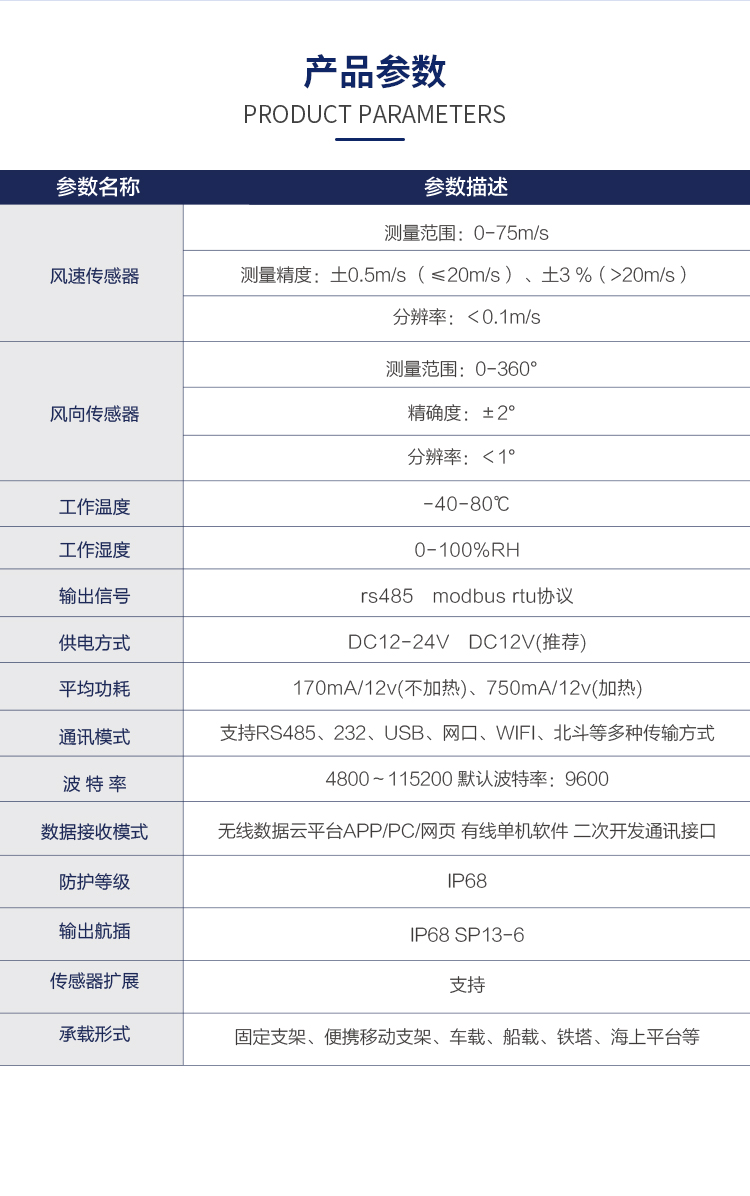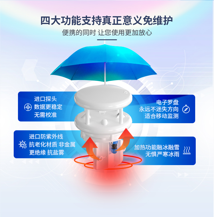 DC-21系列超聲波風速風向傳感器采用先進的超聲波技術(shù),能夠?qū)崟r、準確地測量風速和風向,為氣象預(yù)報、環(huán)境監(jiān)測、風能利用等領(lǐng)域提供可靠數(shù)據(jù)支持。無論是復雜多變的自然環(huán)境,還是嚴格要求的工業(yè)環(huán)境,都能確保測量結(jié)果的準確性和可靠性。