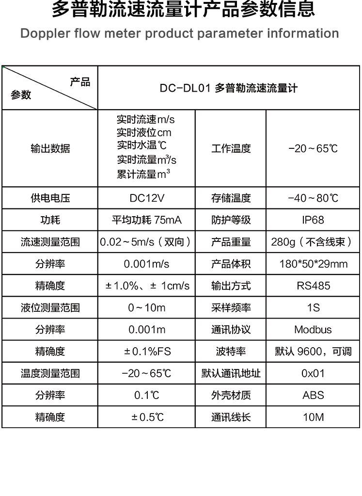LC-DL01多普勒流速流量計(jì)是一款基于超聲波多普勒原理設(shè)計(jì)的高精度測(cè)流設(shè)備。它通過(guò)內(nèi)部集成的信號(hào)處理器和專(zhuān)有流速計(jì)算算法,能夠快速準(zhǔn)確地測(cè)量水體流速,無(wú)需校準(zhǔn)且測(cè)量無(wú)漂移。該設(shè)備不僅集成了水溫傳感器和壓力傳感器,還能同時(shí)采集輸出水位數(shù)據(jù),實(shí)現(xiàn)水位、流速、水溫的一體監(jiān)測(cè).廣泛應(yīng)用于灌區(qū)渠道、自然河道、城市排水管網(wǎng)、工廠計(jì)量、泵站等各種場(chǎng)合,為流量監(jiān)測(cè)和管理提供可靠的技術(shù)支持。