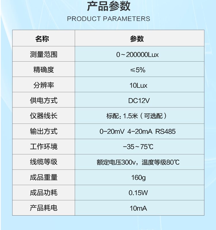 LC-GZD光照度傳感器具備快速響應和寬量程測量的特點,能夠準確捕捉從微弱到強烈的光照變化,為您的應用提供精確的光照數(shù)據(jù)。廣泛應用于智能照明系統(tǒng)、農(nóng)業(yè)溫室管理、戶外環(huán)境監(jiān)測等領域,助力用戶實現(xiàn)精準的光照控制和管理,提升生活和工作環(huán)境的舒適度與效率。