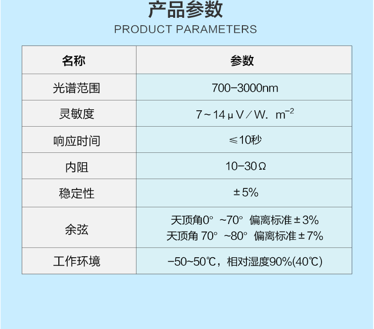 TBQ-JHW型近紅外輻射傳感器主要測(cè)量光伏范圍在700-3000nm之間的輻射值。其特點(diǎn)在于高精度測(cè)量、快速響應(yīng)以及出色的穩(wěn)定性,能夠精確捕捉并測(cè)量近紅外輻射的強(qiáng)度,為用戶提供準(zhǔn)確可靠的數(shù)據(jù)支持。該產(chǎn)品適用于多種領(lǐng)域,包括氣象觀測(cè)、環(huán)境監(jiān)測(cè)、工業(yè)過程控制等,幫助用戶實(shí)時(shí)監(jiān)測(cè)和分析近紅外輻射的變化,為科研、生產(chǎn)及決策提供有力依據(jù)。