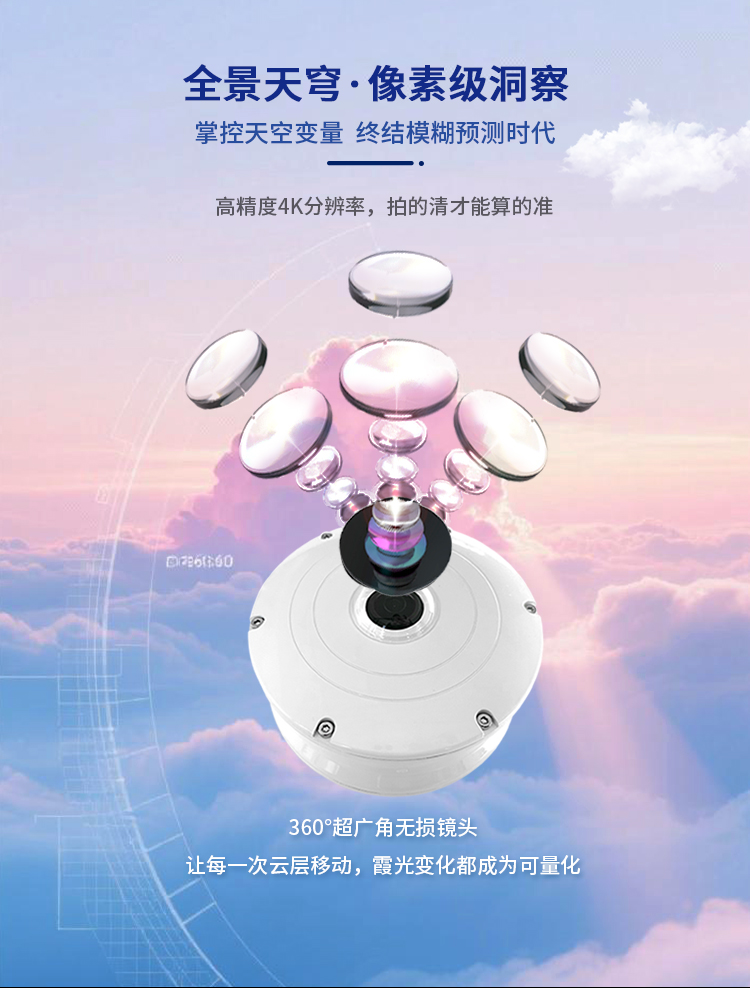 LC-TK系列全天空成像儀是一款集成了先進光學技術、圖像傳感器和智能算法的全天候、自動化天空云量觀測終端。它通過特殊設計的光學傳感系統(tǒng),自動捕捉清晰的全天空畫面,并利用智能云識別算法對云層進行量化分析,為用戶提供站點級的“天空實況”,為光伏電站的發(fā)電功率預測提供有有力的數(shù)據(jù)保障。